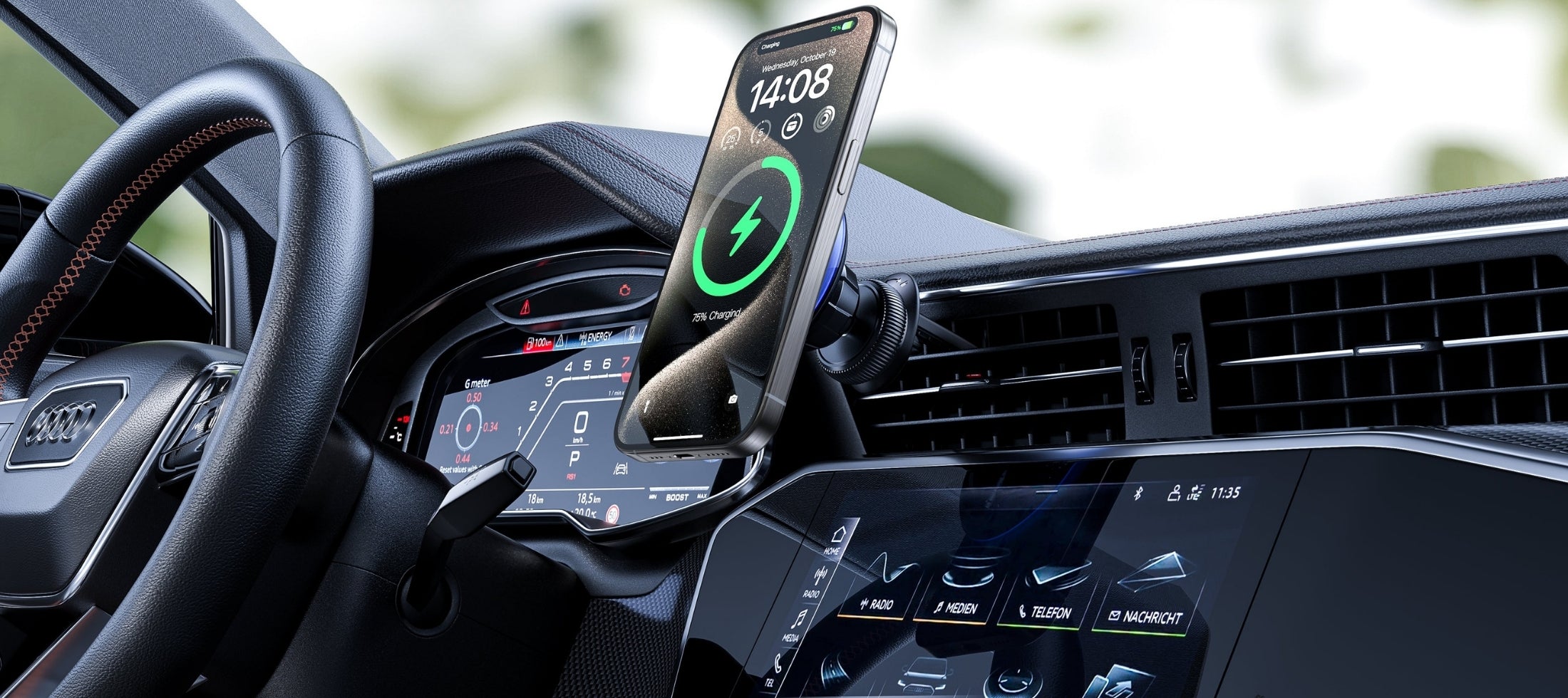 Lenyes CR171 Magnetik M-safe Uyumlu Bükülebilen Eğimi ve Düz Zemin Araç Telefon Tutucu