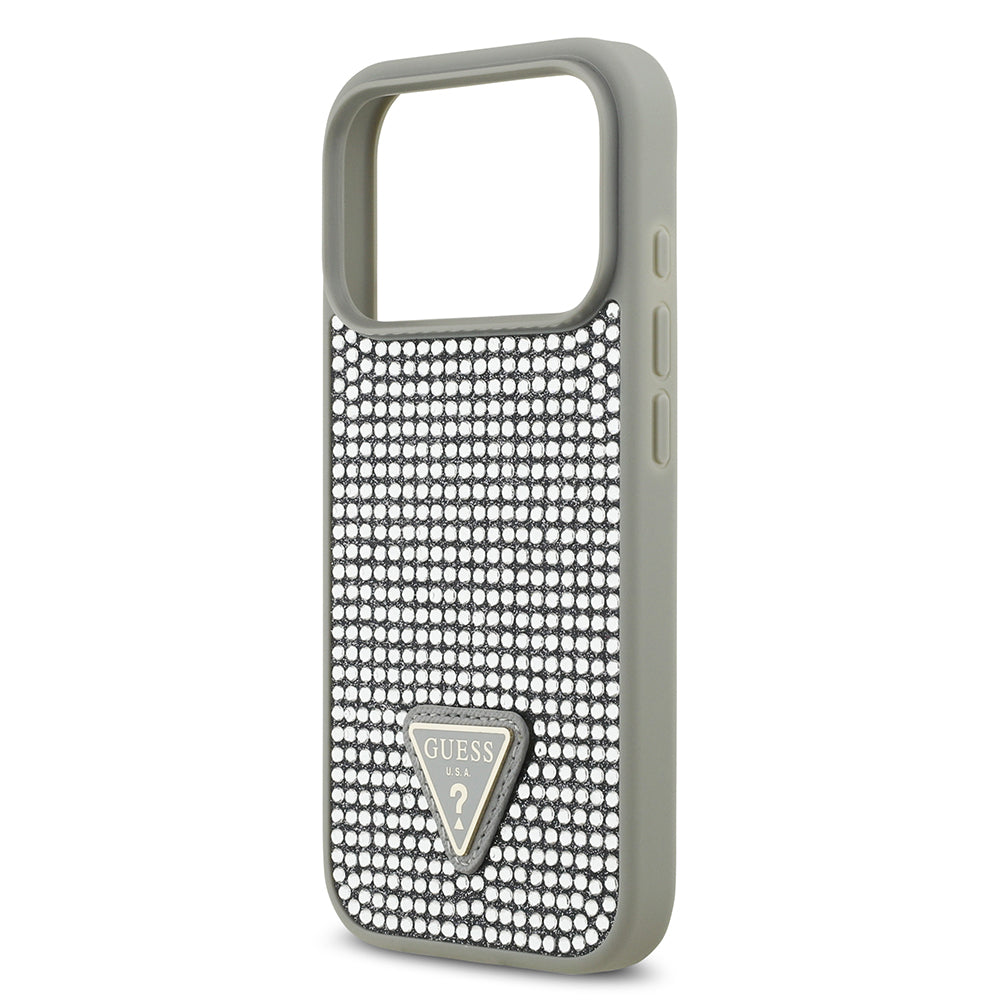 iPhone 17 Pro Kılıf Guess Orijinal Lisanslı Taşlı Arka Yüzey Üçgen Logolu Kılıf