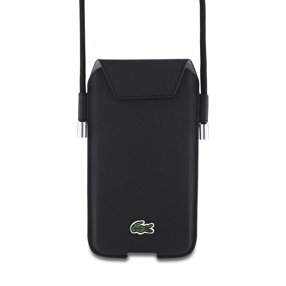 Lacoste Orijinal Lisanslı Çapraz Vücut Askılı PU Pike Desenli 6.7 inç'e Kadar Universal Kılıf