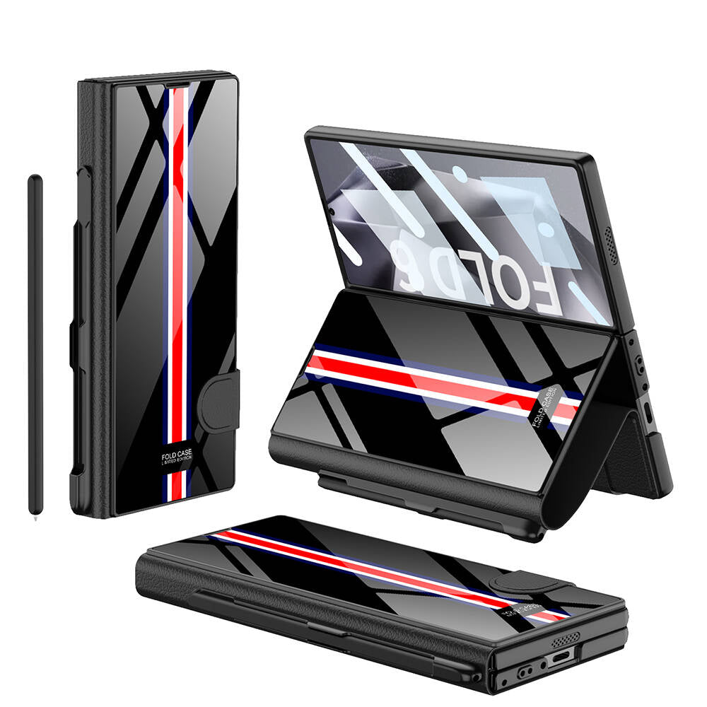 Galaxy Z Fold 6 Kılıf Kamera Korumalı Kartlıklı Kalem Bölmeli Zore Kıpta Çizgili Droga Kılıf
